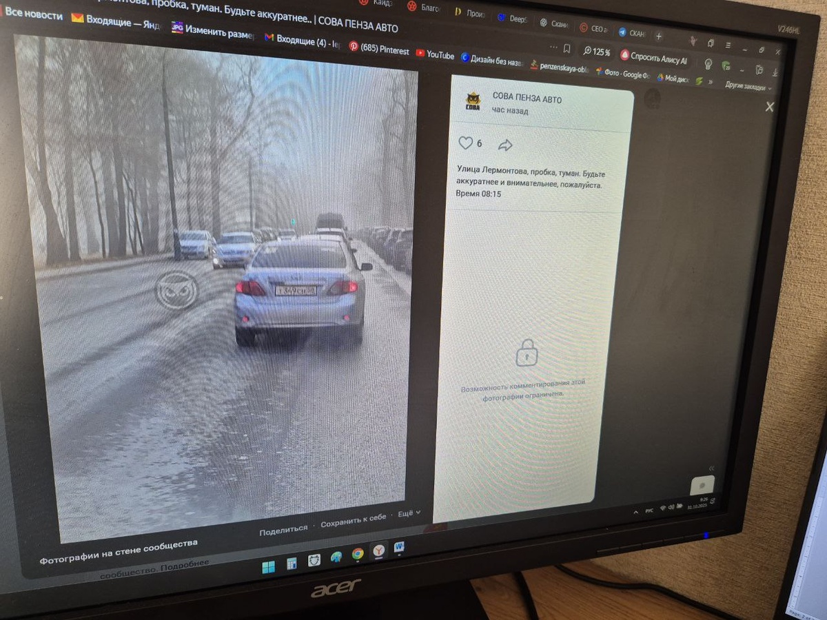 Утро 31 октября в Пензе началось с густого тумана, который значительно снизил видимость на дорогах. Жители города активно делятся в соцсетях фотографиями с перегруженных улиц, скрытых в серой дымке. На одном из снимков, сделанном на улице Лермонтова в 08:15, видна плотная пробка. Автор фото оставил под снимком короткое, но важное предупреждение: «Пробка, туман. Будьте аккуратнее и внимательнее, пожалуйста». О сложных погодных условиях заранее сообщили в региональном управлении МЧС России. Согласно прогнозу, сегодня на территории Пензенской области местами наблюдается туман с видимостью 500 метров и менее. Спасатели призвали водителей и пешеходов соблюдать особую осторожность: не превышать скорость, включать ближний свет фар, избегать резких маневров и держать безопасную дистанцию. Накануне, 30 октября, Приволжское УГМС выпустило предупреждение — в регионе был объявлен желтый уровень погодной опасности именно из-за низкой видимости на дорогах. По словам синоптиков, подобные метеоусловия