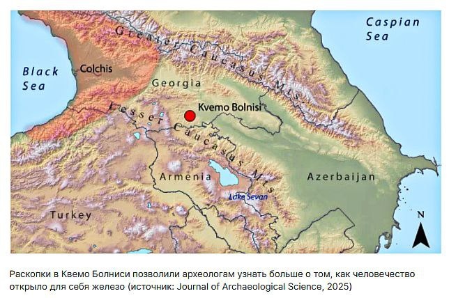 Переход от бронзового века к железному долгое время считался одной из загадок истории. Археологи не обнаружили промежуточных форм, а также результатов неудачных экспериментов, что натолкнуло Андрея Юрьевича Склярова на мысль о том, что металлургия - это дар небесных богов. Однако современным исследователям из университета Крэнфилда в 2025 году удалось доказать давно обсуждаемую теорию о том, что выплавка железа была изобретена медеплавильщиками. На юге Грузии, в районе села Квемо Болниси археологи повторно изучили остатки древней плавильной мастерской возрастом около 3000 лет. Эту мастерскую уже изучали в 1950-х годах, но тогда находку груды гематита (оксид железа) и шлака учёные приняли за свидетельство того, что именно в Квемо Болниси впервые освоили выплавку железа. Однако современные методы анализа показали, что мастера здесь плавили медь. Учёные выяснили, что гематит, найденный на территории мастерской, служил не рудой для чугуна, а использовался в качестве флюса для увеличени