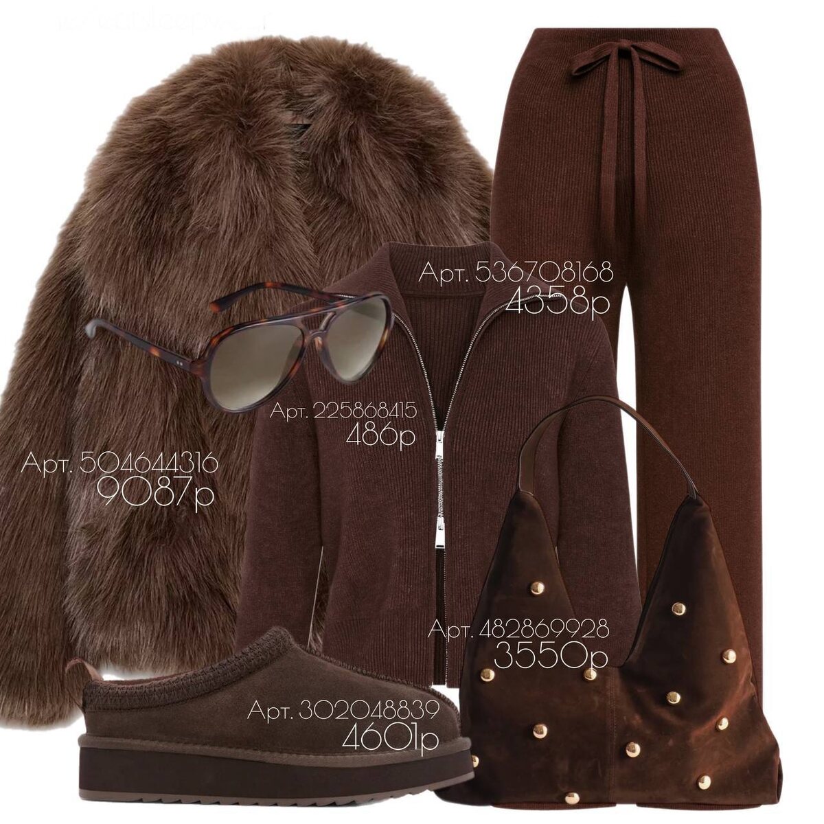 Я хочу поделиться с вами своей подборкой образов с WB. Каждый из этих луков я продуман так, чтобы они подходили для разных случаев — от повседневных выходов до особых мероприятий. Надеюсь, вы найдете вдохновение в моих идеях и сможете создать свои собственные стильные образы! Начнем? Образ Тотал Браун идеально подходит для холодного сезона. Вязаный костюм в теплых коричневых тонах создает уют, а молния добавляет современности. Искусственная шуба подчеркивает элегантность и тепло, а угги обеспечивают комфорт для повседневной носки. Завершает ансамбль замшевая сумка, добавляющая нотку роскоши. Игра фактур делает образ интересным и многослойным, подчеркивая индивидуальность. WB: Костюм Шуба Сумка Угги Очки Этот образ сочетает элегантность и современный стиль. Джемпер сливочного цвета создает уютную атмосферу, а кожаные брюки кофейного оттенка придают строгость и уверенность. Замшевые ботильоны на каблуке добавляют женственности, а дерзкий кожаный плащ завершает ансамбль, придавая ем