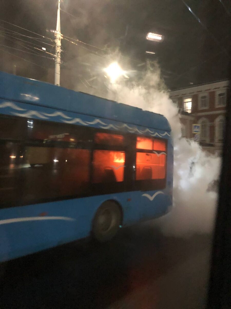 Коллеги пишут, что в районе железнодорожного вокзала сильно горит троллейбус «Саратов - Энгельс