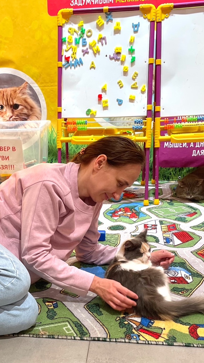 - В котопространстве, которое я посетила, усатых-полосатых брать на руки нельзя, а поиграть с ними и погладить - пожалуйста. Правило вполне оправданное, если все будут тискать животных, для них это обернется стрессом.