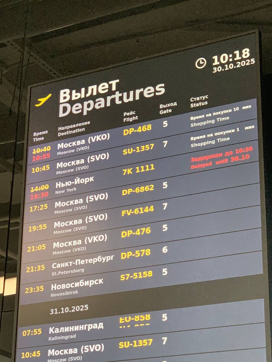 На табло в саратовском аэропорту «Гагарин» сегодня заметили фантомный рейс в Нью-Йорк. Его еще и фантомно задержали. В пресс-службе «Гагарина» говорят, что это они тестировали табло: В аэропорту в течение короткого времени проводилось тестирование информационной системы, которая отвечает за работу информационных табло. Для целей тестирования на одном из табло был выведен несуществующий рейс. Тестирование не повлияло на работу аэропорта. За фото спасибо подписчице Юлии😎