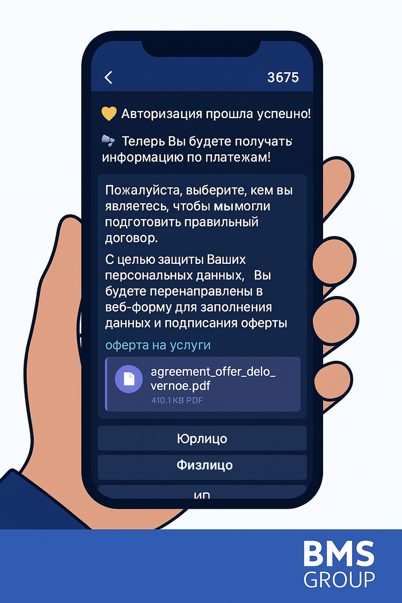 Важно: Все документы подписываются онлайн — быстро, удобно и юридически безопасно. Звони: +7(812)322-55-12 Пиши: sale@bmsgroup.ru Сайт: https://botoplat.ru/