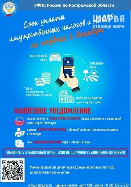 Вашему вниманию! До конца ноября остаётся совсем немного времени, а значит, приближается крайний срок уплаты налогов. Напоминаем: оплатить имущественный, транспортный и земельный налог необходимо ДО 1 ДЕКАБРЯ текущего года. Это важно сделать вовремя, чтобы избежать штрафов и пени. Способы оплаты налогов: - Через личный кабинет налогоплательщика на сайте ФНС России. - В мобильном приложении вашего банка. - В отделениях банков и почтовых отделений. - Через портал Госуслуги. Проверьте ваши налоговые уведомления и оплатите всё заранее Шарья – столица мира Крупнейшее городское СМИ Источник: Открыть