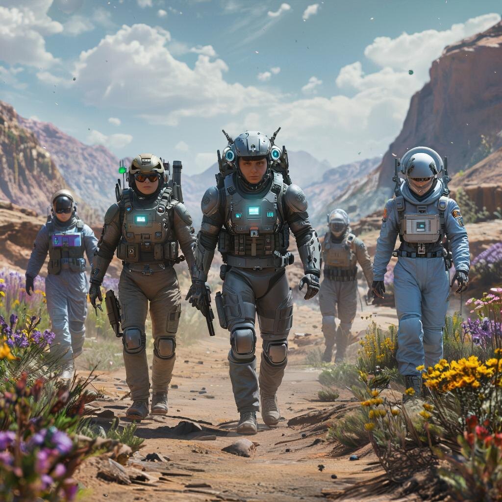 Глава первая: Портал открыт — Разведгруппа, внимание! Готовимся к переходу, пять секунд до открытия портала! Майор ФСБ Александр Сергеевич Гуров внимательно смотрел на тёмное пятно в центре зала лаборатории. Всё было готово: генераторы заряжены, биологические сканеры активированы, психологи готовы зафиксировать любые изменения состояния бойцов. Медперсонал стоял рядом, готовый немедленно оказать помощь. Группа состояла из лучших бойцов российского спецназа, прошедших жёсткий отбор и подготовку. Их миссия была простой и одновременно невероятно сложной: проникнуть в параллельный мир, собрать образцы местной флоры и фауны, изучить особенности экологии планеты и вернуться обратно живыми и невредимыми. Портал открылся внезапно, заполнив помещение мягким голубым светом. Группа быстро двинулась вперёд, исчезнув в сиянии перехода. Оказавшись на месте назначения, бойцы обнаружили совершенно иной мир. Вместо привычной земли под ногами оказался густой мох, покрытый россыпью светящихся гри