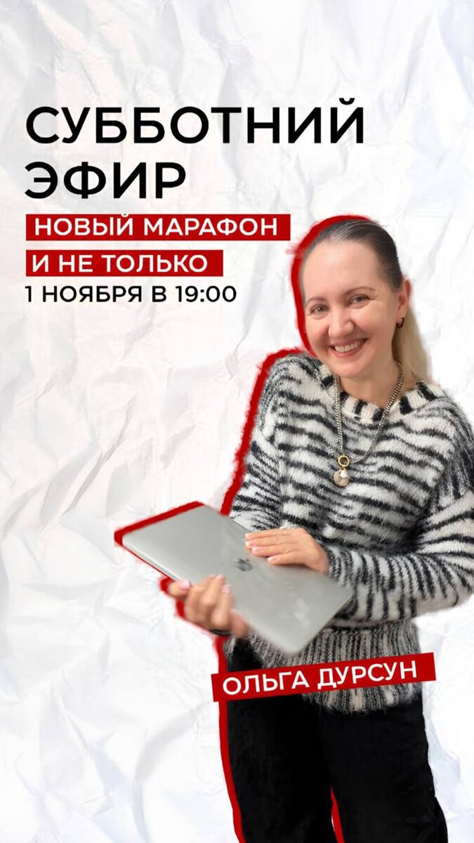 СУББОТНИЕ ПОСИДЕЛКИ с @Olga_Dursun в прямом эфире ❤️ В эту субботу устроим настоящий «марафон» новостей 🥰 Ольга расскажет про приближающийся бесплатный марафон. По секрету скажем: будет круто ❤️🥰 А еще, расскажем в эфире про наш НОВЫЙ ПРОЕКТ: лабораторию творчества или как мы ее назвали FELT LAB 💥 Поверьте, ТАКОЕ НЕЛЬЗЯ ПРОПУСТИТЬ! Приглашаем всех! 📆 Встречаемся 1 ноября в 19:00 (Мск) ЭФИР ПРОЙДЕТ на два экрана: - В телеграм-канале: https://dzen.ru/id/662bafec12d1c34b9c038a94 - В сообществе в Вконтакте: https://vk.com/olgadursun_yarn ▶️ Прямой эфир 1 ноября в 19:00 (Мск) Ждем вас 😘