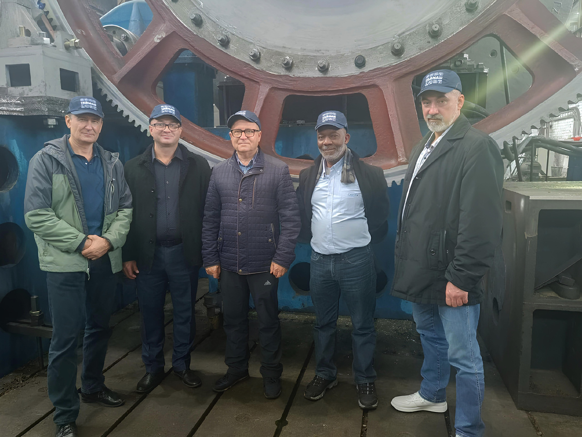 типоразмера. Целью эксперимента было увеличение производительности за счет снижения веса барабана и более интенсивной разгрузки измельчаемого материала. В результате возросла пропускная способность мельницы — в барабан можно загрузить больше руды, а сама машина работает эффективнее. Прежде чем приступить к проекту, сызранские машиностроители не единожды побывали на фабрике. В 2022 году заводская делегация организовала техническ