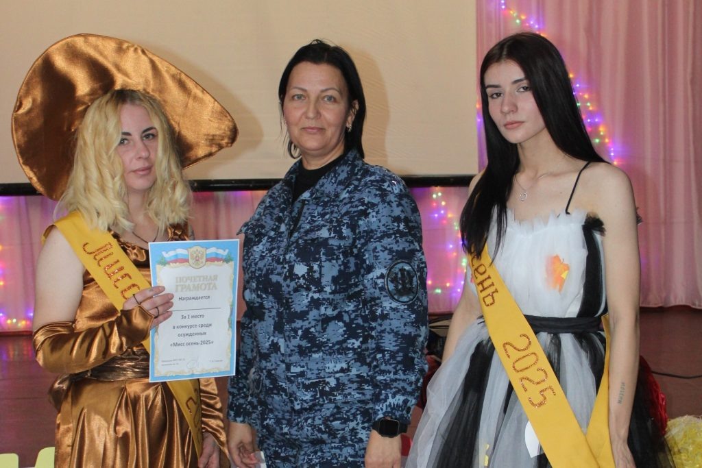 В исправительной колонии №18 ГУФСИН России по Ростовской области прошел ежегодный конкурс «Мисс осень 2025». Участницы из разных отрядов продемонстрировали творческие способности в танцевальных и вокальных номерах, представив яркие образы и запоминающиеся выступления, которые вызвали горячий отклик у зрителей. Жюри, состоявшее из представителей администрации учреждения, определило победительниц конкурса. Титул «Мисс осень 2025» завоевала осужденная Оксана П. из первого отряда. Второе место заняла Елена М. из отряда №2, а третье место досталось Ксении Ш. из шестого отряда. Все участницы конкурса получили дипломы и были поощрены руководством колонии за активное участие в культурной жизни учреждения.