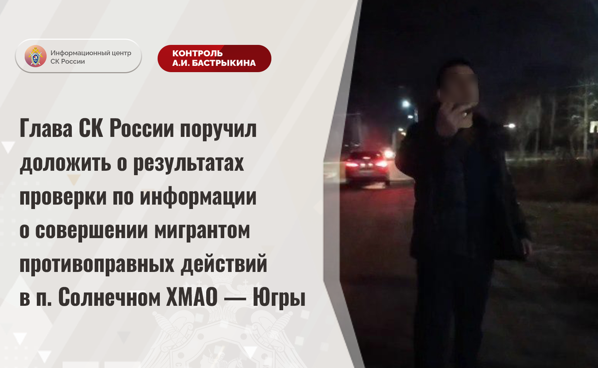 Глава СК России поручил доложить о результатах проверки по информации о совершении мигрантом противоправных действий в п. Солнечном