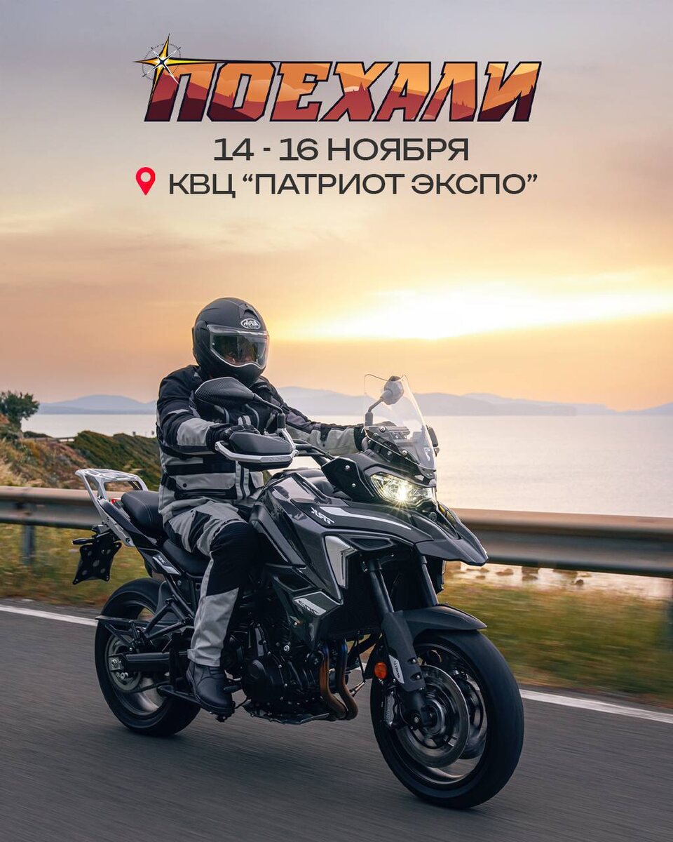 С 14 по 16 ноября приглашаем вас на стенд Benelli в КВЦ «Патриот ЭКСПО»! Здесь можно увидеть вживую самые яркие модели из российской линейки и прочувствовать ту самую итальянскую страсть к дороге. • Leoncino — современная интерпретация классики с неподражаемым итальянским характером. • TRK — универсальный спутник для путешествий по любым дорогам, от города до дальних маршрутов. Ждём всех любителей мотоциклов — посидите за рулём, пообщайтесь с нами и ощутите атмосферу бренда с более чем вековой историей. ⏰ Даты: 14–16 ноября 📍 Место: КВЦ «Патриот ЭКСПО», Москва 🎟 При покупке билета на сайте poehaliexpo.ru используйте промокод benelli2025 и получите скидку. Предложение действует до 13 ноября 2025 года включительно. Benelli. Итальянская душа. Ваша свобода.