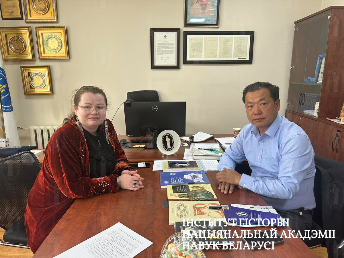 Заведующий отделом научной консервации археологических артефактов Института истории НАН Беларуси Анастасия Костюкевич встретилась с директором Института истории и этнологи Академии наук Монголии Лхагвасурэном Эрдэнэболдом и учёным секретарём Цэндмаа Энхчимэг. В ходе встречи были обсуждены вопросы сотрудничества в сфере исторических и археологических исследований, а также консервации и реставрации археологических находок.