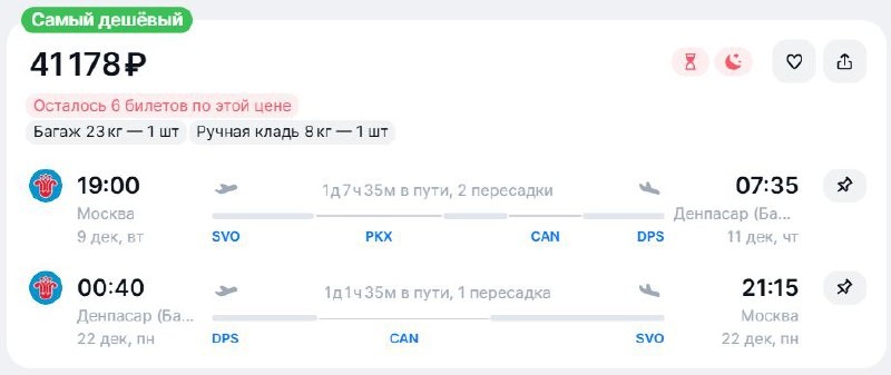 ✈️На «Крыше ТурДома» снова рубрика «А чего бы не слетать». Делимся подборкой интересных, на наш взгляд, билетов по приятным ценам. Нашли неплохие варианты «туда-обратно» в Индонезию, Китай, Таиланд и Египет из Москвы.