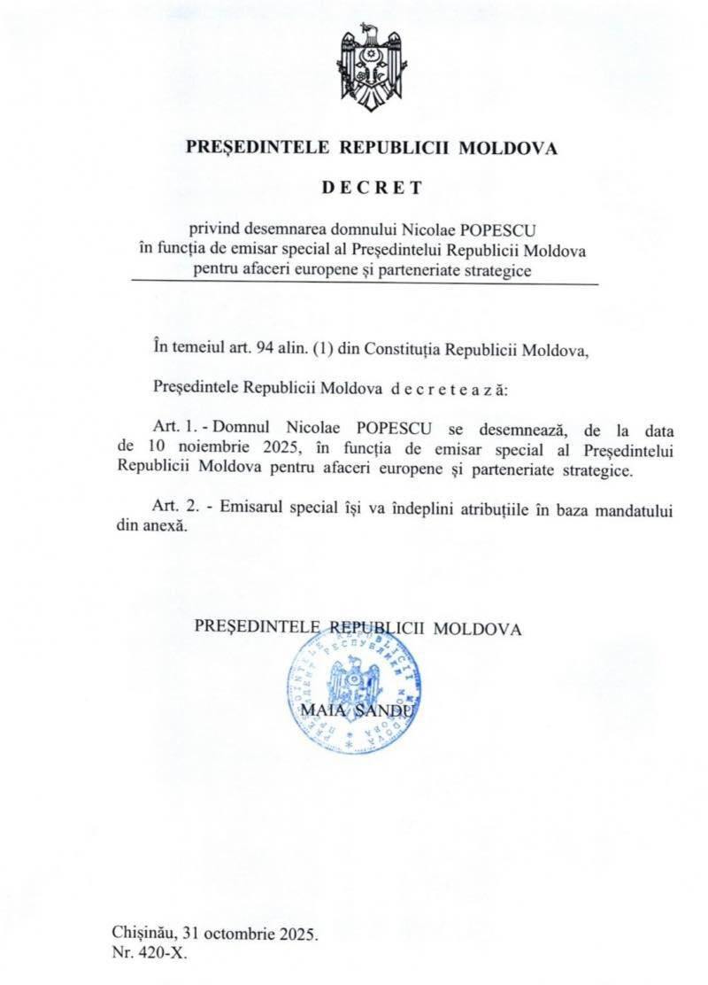 ⚡️🇲🇩А тем временем... Нику Попеску назначен специальным посланником по европейским делам и стратегическому партнёрству. ☝️😒 Указ подписала президент Майя Санду. @eNewsmd.online 👈 Подписывайтесь на наш канал
