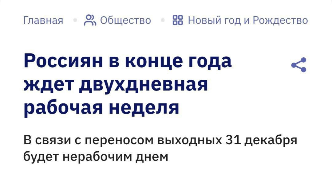 🤩Последняя рабочая неделя года будет двухдневной. Она продлится с 29 по 30 декабря Выходных будет целых 12 дней 📱ЧП Ставровполь | Вход📱 😀😀😀 🇷🇺 ЧП Ставрополь в МАХ 🇷🇺