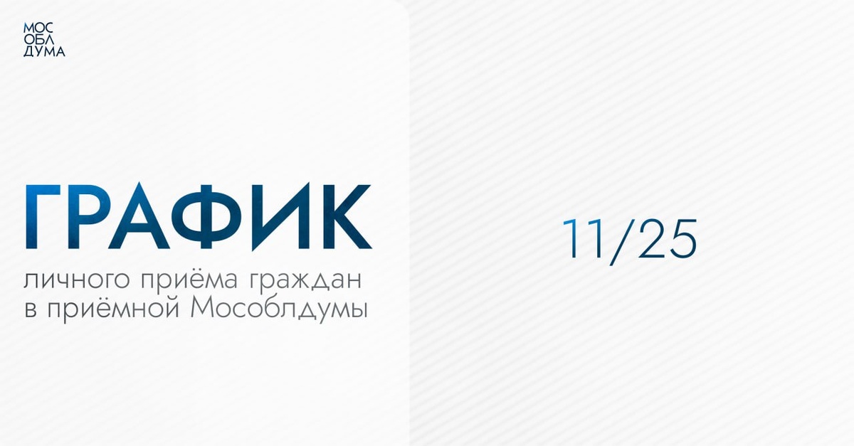 График личного приёма граждан в приёмной Мособлдумы в ноябре 🔹Записаться можно по единому номеру контакт-центра: 8(495)594-94-94 ▪️пн-чт с 9.00 до 18.00 ▪️пт с 9.00 до 16.45 ❗️кроме выходных и праздничных дней 🔹Приёмная Московской областной Думы находится по адресу: Московская область, г. Красногорск, бульвар Строителей, д. 1, здание контрольно-пропускного пункта (КПП). Подробнее в карточках 👆 и на сайте mosoblduma.ru 💼 | Подписаться 📱Мособлдума в MAX