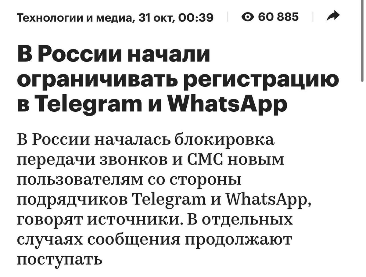 Если бы наши мобильные операторы не перехватывали эти смс-коды, нас бы уже читали солдаты НАТО 18+ НАСТОЯЩИЙ МАТЕРИАЛ (ИНФОРМАЦИЯ) ПРОИЗВЕДЁН, РАСПРОСТРАНЕН И (ИЛИ) НАПРАВЛЕН ИНОСТРАННЫМ АГЕНТОМ КАВЕРЗИНОЙ СВЕТЛАНОЙ ВИКТОРОВНОЙ ЛИБО КАСАЕТСЯ ДЕЯТЕЛЬНОСТИ ИНОСТРАННОГО АГЕНТА КАВЕРЗИНОЙ СВЕТЛАНЫ ВИКТОРОВНЫ* * номер в списке Минюста 777 А вообще, достало уже это отношение государства к людям, как к глупым, невежественным, безответственным детям. Может, мы всё же сами можем разобраться, в каком мессенджере регистрироваться, а в каком нет?