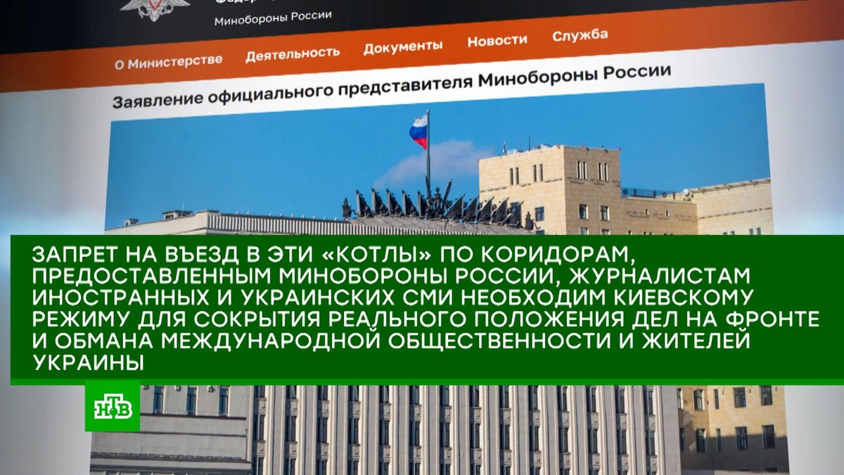 [ Смотреть видео на сайте НТВ ] В Минобороны заявили, что Киев, запрещая украинским и иностранным журналистам попасть по российским коридорам в зону Красноармейска, Димитрова и Купянска, пытается скрыть реальное положение на фронте. Как заявил официальный представитель МО Игорь Конашенков, вчерашнее заявление МИД Украины «стало официальным признанием катастрофичности ситуации для остатков ВСУ в Красноармейске, Димитрове и Купянске». Таким образом Киев признал, что никаких других путей въезда или выезда из «котлов» журналистов или бойцов ВСУ, кроме как по российским «коридорам безопасности», в этих районах попросту не осталось. Конашенков добавил, что Киевский режим запрещает журналистам ехать в эти «котлы», потому что хочет скрыть от всех катастрофичное положение ВСУ на фронте. Напомним, накануне Владимир Путин отдал приказ Минобороны пустить иностранных журналистов к тысячам окруженных солдат ВСУ в Красноармейске (Покровск — украинское название), Димитрове (Мирноград — украинское назв