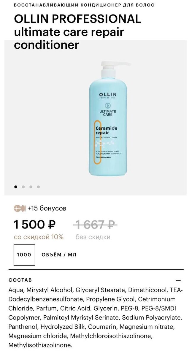 Вводим рубрику: Разбор по составу 💋 💦OLLIN PROFESSIONAL ultimate care repair conditioner Описание и обещания: Восстанавливающий кондиционер с церамидами и протеинами шелка, восстанавливает плотность волос, выравнивает их структуру. Кондиционер возвращает волосу шелковистость и блеск. Подходит для всех типов волос, в том числе сильно поврежденных. Разбор состава: • Aqua - основа, вода; • Myristyl Alcohol - жирный спирт, придает гладкость. Эмульгатор - придает средству кремообразную консистенцию; • Glyceryl Stearate - эмульгатор, смягчает волосы; • Dimethiconol - силикон. Смягчает и образует прочную, гладкую пленку на волосах, обеспечивая долговременный блеск, защиту от влаги и термозащиту; • TEA-Dodecylbenzenesulfonate- смягчает волосы с глянцевым и шелковистым ощущением; • Propylene Glycol - увлажнитель, усилитель проникновения . все, что идет дальше по списку уже в маленьких процентах Увлажнители · Glycerin, Panthenol - увлажняет, притягивающий влагу к волосам; · PEG-8 (ПЭГ-