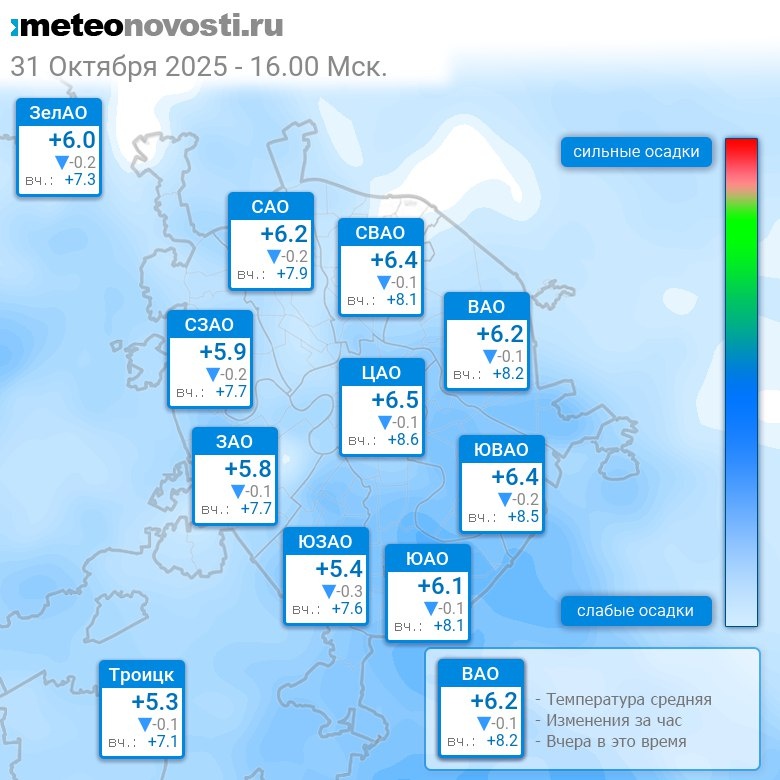 В 16:00 в Москве было от +5.1°C до +6.7°C, средняя температура +6.1°C #погода #Москва #осень #температура #31октября #пятница Перейти на сайт Прогноз погоды на 14 дней