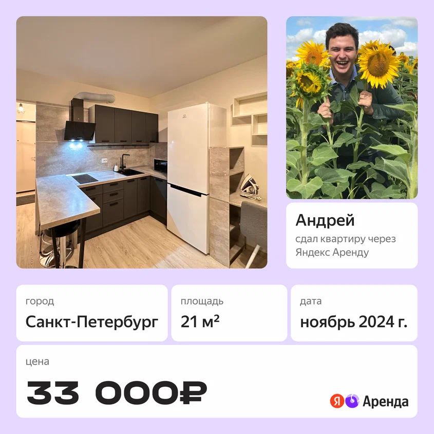 Сдавать жильё бывает непросто: нужно искать жильцов, подписывать договоры, контролировать оплату. Но сервис Яндекс Аренда помогает сделать этот процесс прозрачным и удобным. Сегодня своей историей сдачи квартиры поделился наш пользователь из Санкт-Петербурга – Андрей. Меня зовут Андрей, я живу в Санкт-Петербурге и работаю инженером по продажам. Квартира, которую я сдаю через Яндекс Аренду, изначально была куплена как инвестиция. У меня уже был самостоятельный опыт поиска жильцов, поэтому я хорошо понимал, какие трудности могут возникнуть на пути. О Яндекс Аренде узнал случайно, когда размещал объявление на Яндекс Недвижимости. Условия показались интересными, и я решил попробовать. До этого других альтернатив по сдаче, кроме как через агентство недвижимости, я не знал, а работать с риелторами мне не хотелось. С тех пор через Аренду я сдал уже две квартиры. Признаюсь честно, сначала интерфейс приложения показался мне непривычным, но в итоге разобрался я довольно быстро. Уже через пару ч