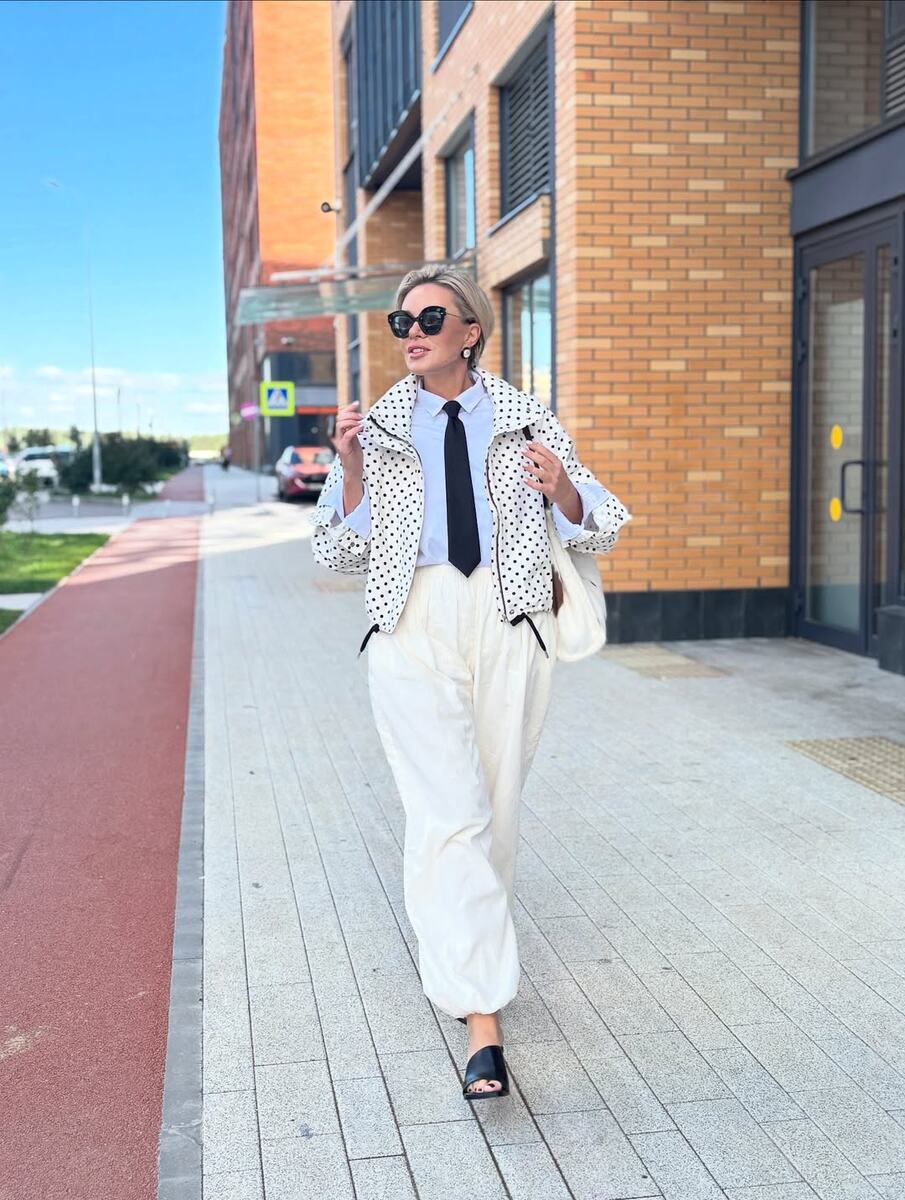 Здравствуйте, дорогие читатели! Какую бы статью я ни выложила, неизменны ваши просьбы дать ссылки на всю одежду и аксессуары, которые есть на мне. По вполне понятным причинам это проблематично, но на ваши вопросы я всегда стараюсь ответить. Поэтому я ввела на канал рубрику, в которой буду в подробностях обозревать свои любимые образы. Не забывайте ставить лайк за мои старания! Сегодня у нас на очереди довольно необычный образ для тёплых деньков (понимаю, что многим уже неактуально, но не могу не показать, на будущее все равно пригодится). Сразу начну с бомбера, который наверняка притянул ваш взгляд. Принт - актуальный горох. Бомбер из Zara, заказывала через байера. Брюки-алладины в моем образе из Idol и это, к сожалению, единственная вещь из подборки, которая на данный момент есть в наличии (на Ламоде). Ссылка на брюки Модель из хлопка, очень комфортная, однозначно всем ее могу посоветовать. Мюли Эконика, понравились мне, конечно, своим креативным каблуком в виде машины. Классическая б