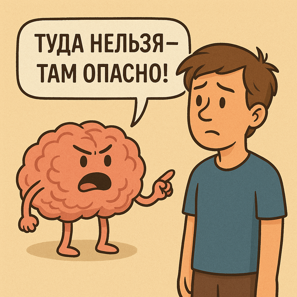 Его задача — сохранить стабильность, а не развитие. Всё новое для мозга — потенциальная опасность.
