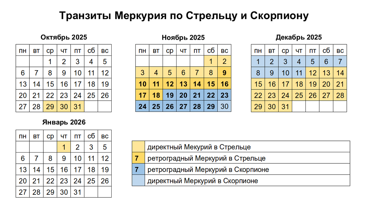 29.10.2025 – 08.11.2025 | Меркурий в Стрельце