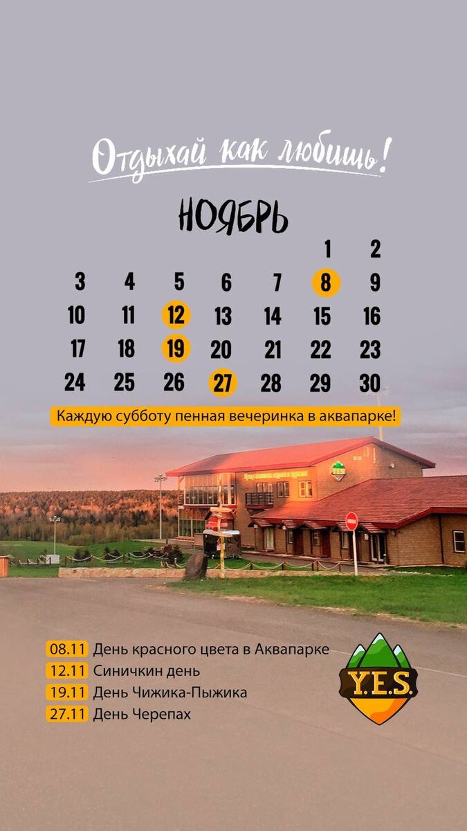 Кто сказал, что ноябрь скучный месяц? 😉 Мы знаем, как добавить красок в серые дни 🌞 Ловите обои на смартфон, где отмечены праздники нашего Центра. Приезжайте в YES и пусть каждый день будет похож на праздник 🧡