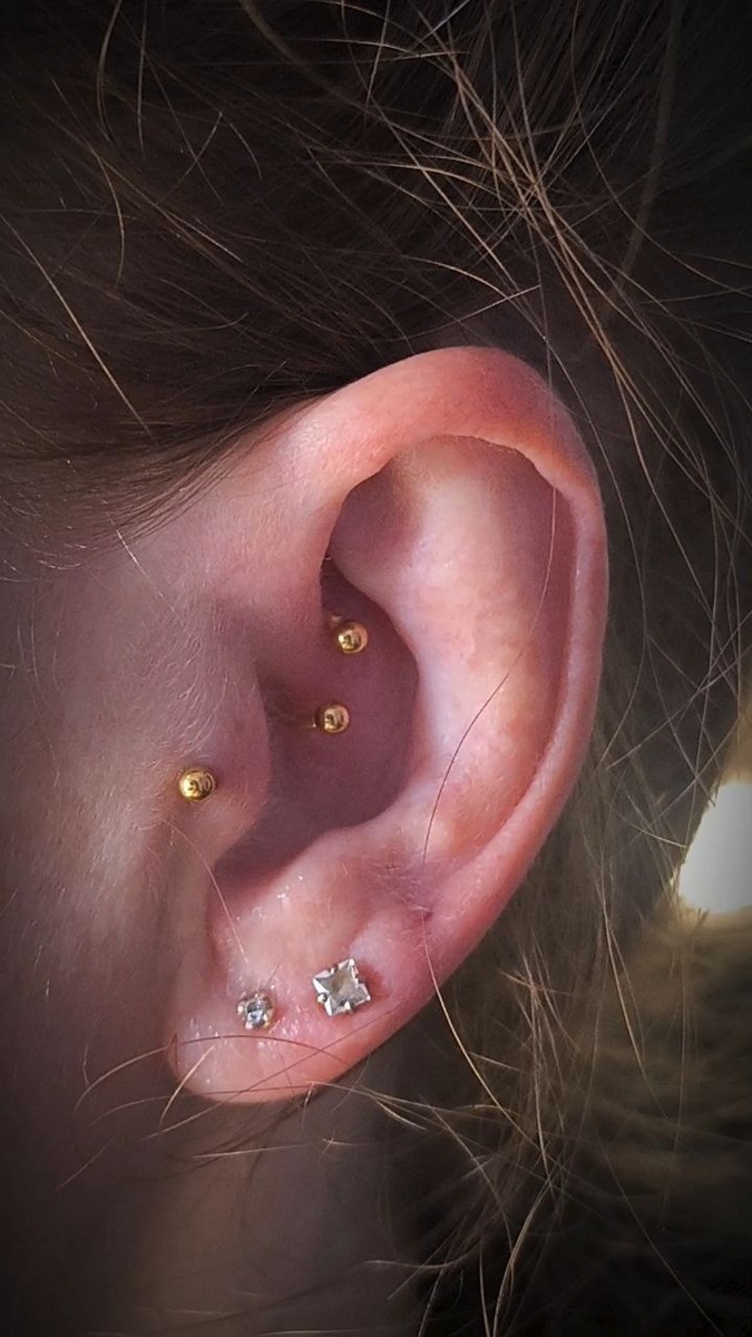 ✨ Дэйс и Трагус — два стильных акцента на одном ухе 💛 и с обоих сторон