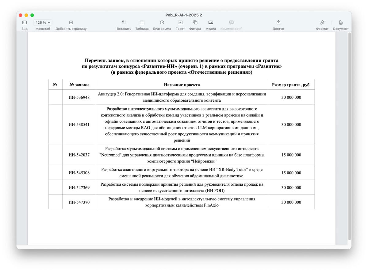Победители гранта ФСИ "Развитие-ИИ". На картинке. До 30 млн. Завидую ребятам по доброму. Кстати, интересные проекты делают - ИИ помощник руководителя отдела продаж, например. Да в общем на картинке. В общем дерзайте. Мы тоже ждем конкурсов податься, которые нам подходят. Русский ИТ бизнес
