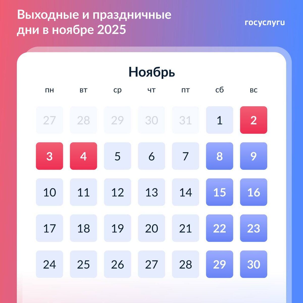 2 ноября — рабочий день с 7-дневной рабочей неделей;