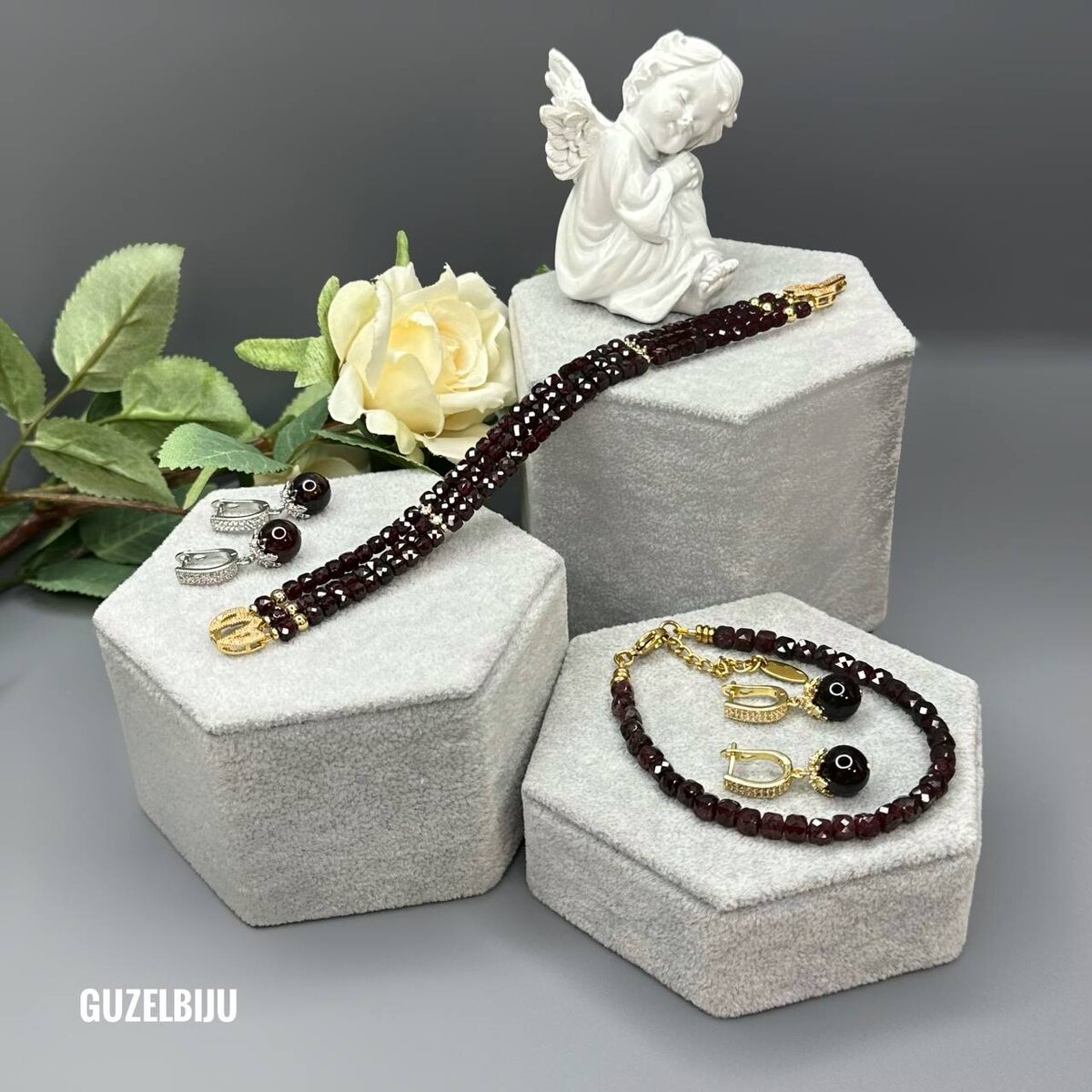 Любимые гранатики… серьги 2200 руб, браслет один ряд 1500 руб, браслет 3 ряда 4100 руб.
