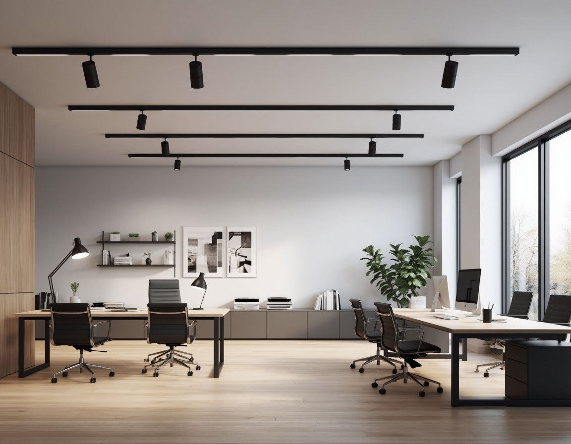 Трековые системы — для потолков и стен, подходят для офисов и просторных помещений.