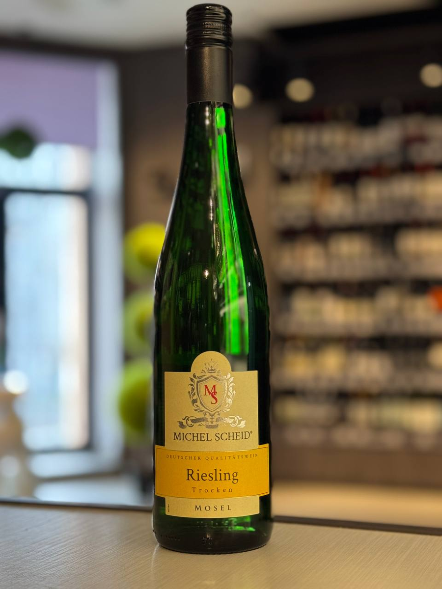 Вино "Michel Scheid" Riesling — изящное и освежающее белое вино с яркой минеральной нотой, созданное из винограда сорта Рислинг, выращенного в знаменитом регионе Мозель, Германия. Лозы здесь имеют возраст от 5 до 12 лет. Урожай собирают вручную, затем ягоды тщательно отбирают и мягко прессуют. Ферментация проходит в емкостях из нержавеющей стали при контролируемой температуре 18–20 °C, после чего вино недолго выдерживается в тех же стальных чанах. Перед розливом напиток проходит двойную фильтрацию, что придаёт ему кристальную чистоту и прозрачность.