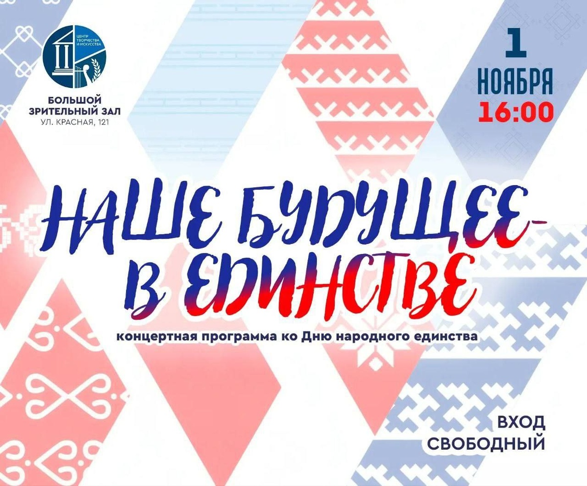 🎭Центр творчества и искусства приглашает на праздничный концерт, посвящённый Дню народного единства.