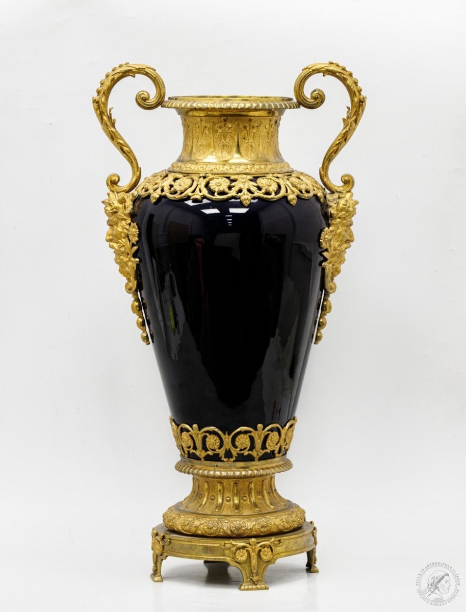 Русская антикварная галерея Сайт: rus-gal.ru #Ваза на четырёх ножках с ручками в виде #маскарон #Франция, вторая половина XIX века. Бронза, золочение, крытье, литье, монтировка, фарфор. 63,5 Х 33 см #Ампир #Вазы Подробнее: https://rus-gal.ru/works/vaza-na-chetyryoh-nozhkah-s-ruchkami-v-vide-maskaron-7387/