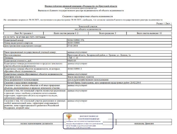 Название: Сведениями о фактическом состоянии объекта недвижимости организатор торгов не располагает Канал: Госземля Иркутская область Область: обл Иркутская Район: м.р-н Заларинский Населенный пункт: с.п. Троицкое, с Троицк, ул Ленина, з/у 1а Локация: Смотреть на карте ВРИ: Сельскохозяйственное использование Кадастровый номер: 38:04:110901:376 Кадастровая стоимость: - Вид сделки: Продажа Площадь: 1768 м² Начальная цена: 285000.00 руб. Дата завершения: 01.12.2025 Подробнее: ГИС ТОРГИ #госземля #земляотгосударства #земля #земельныйучасток #земельныеторги #торги #аукцион #продажаземли #продажа #иркутскаяобласть