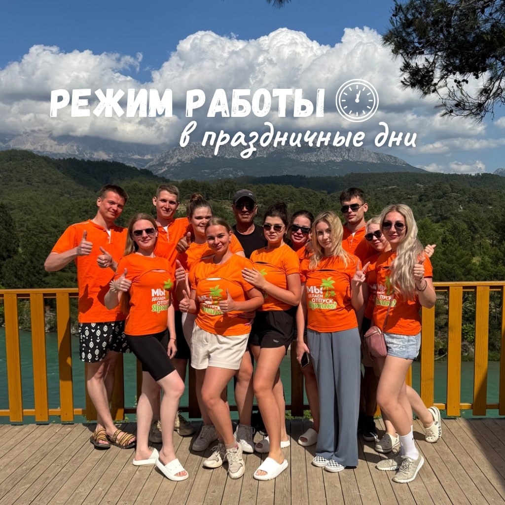🕗 ГРАФИК РАБОТЫ В ПРАЗДНИЧНЫЕ ДНИ Дорогие наши путешественники, обращаем внимание, что все наши офисы в предстоящие праздники будут работать в обычном режиме, без изменений ❕ Ждём вас как обычно: делаем подборки туров, встречаемся в офисе, оформляем документы, отправляем вас на отдых и остаёмся на связи каждый день👩💻 📍Посмотреть режим работы и адреса всех офисов ➡ЗДЕСЬ