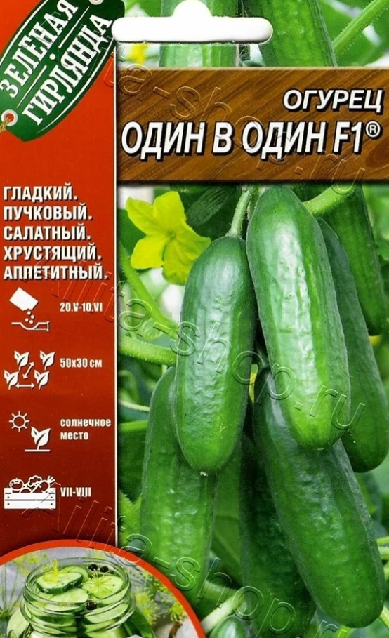 Партенокарпический гибрид. С очень медленным развитием боковых побегов. Высокоурожайный. Теневыносливый. Стрессоустойчивый. Лист крупный. Зеленец тёмнозелёный, белошипый, среднебугорчатый, вкусный. Универсальный. 9-12 сантиметровый~100-120 граммовый зеленец. Устойчивый к болезням. 5 семечек от производителя стоят 115 рублей. Такого же плана у Семко есть сорт Алексеевич F1, но в 2 раза дешевле.