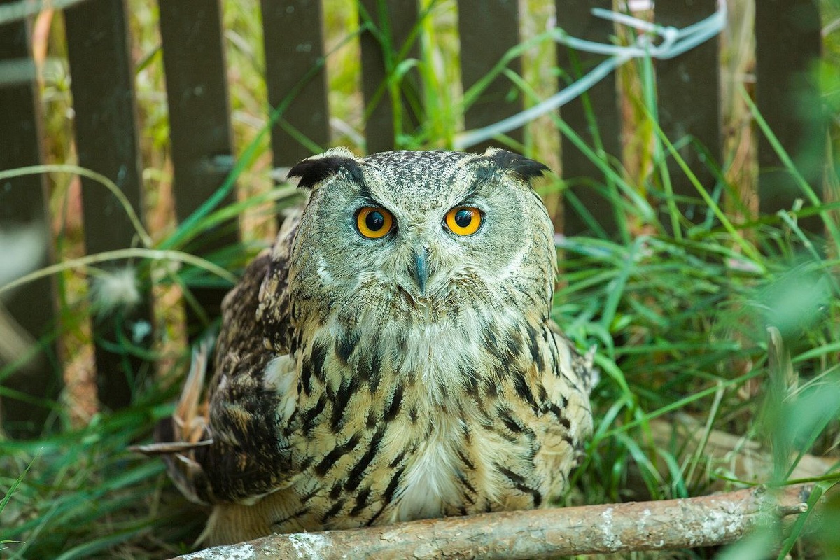 Осень - это попытка построить реабилитационный центр в промежутке между сезоном птенцов и началом снегопадов. Лицо филина как бы выражает "Где мой обещанный вольер, ироды?" А мы никак не успеваем положить крышу 😕 Слишком много задач одновременно, и погода совсем не радует. Ветка изначально задумывалась как присада, но, очевидно, теперь это шлагбаум. Чтобы никто больше не парковал своих филинов на это место. Фото: Татьяна Avaloness
