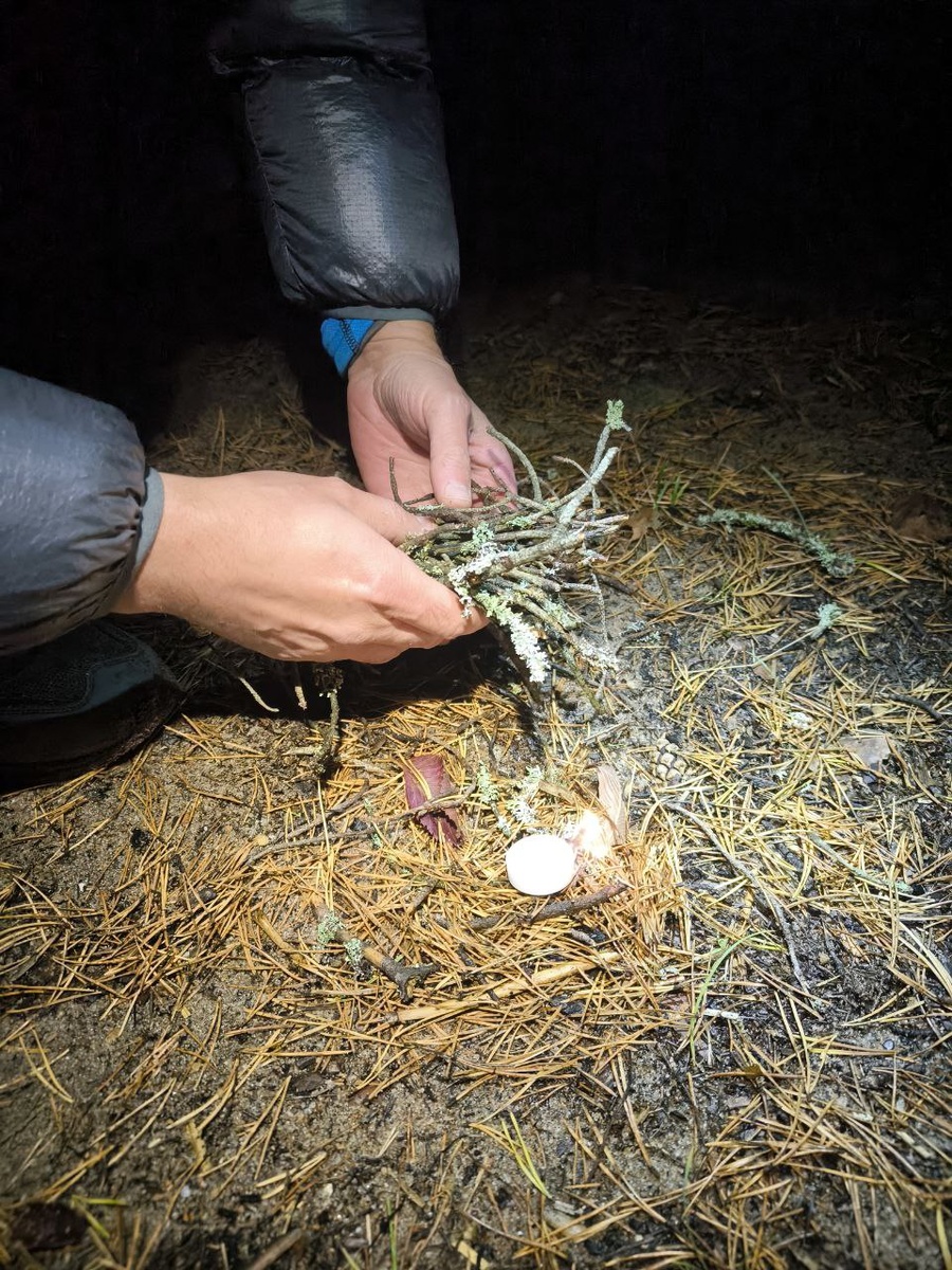 По одежде и снаряжению пока думаю как лучше оформить информацию, поэтому пока про еду и костер! Костер. Тут без Саши было бы тяжело, я сам как-то утратил навык разведения, да и в соло поездках редко его развожу. Рецепт следующий - очищаем старое костровище от шлака и мокрых веток. Выкладываем из веток или дощечек площадку под будущий костер. Собираем мелкую хвою и дальше используем читерство - спиртовую таблетку. В целом на этом этапе главное поддерживать его мелкой хвоей и потихоньку добавлять другие ветки чуть большего размера, а рядом сушить большие. На вторую ночь мы даже соорудили нодью. Тут моя пила сильно нас выручила и все темное время вечера мы отлично провели у теплого, даже жаркого костра. Еда. Тут пазл пока не до конца сложился. Дождливая, мокрая, холодная погода очень сильно тебя наказывает, когда ты останавливаешься даже на 5 минут, так что о полноценном обеде на улице говорить сложно. Первый день ехали на перекусах и это не сработало, так как не хватало. В итоге оба