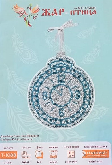 Здравствуйте! Новый год не за горами и я вышиваю новогодние игрушки. Сегодня хочу поделиться с Вами двумя финишами. Первый финиш: Набор от Жар птицы. Вот такие новогодние часы: В набор входит две заготовки из фетра (лицевая блестящая серебряная и задняя белая), игла, атласная лента для подвеса и нитки мулине 1 цвет. Также в наборе есть код на электронную схему в makosh. Размер готовой работы: 13 х 11 см. Немаленькая игрушка. Вышивалась очень легко, фетр жесткий, перфорация четкая, крупная. Крестики ложатся ровно. Вышивается в три нити. Оборотная сторона - белый жесткий фетр, немного больше по размеру, чем лицевая сторона. Из-за этого по контуру игрушки образуется белый кант. Симпатичная новогодняя игрушка: Второй финиш: Снова набор от Жар птицы, снова новогодняя игрушка и снова на блестящем фетре. Это сова: Состав набора такой же, как в часиках, только цвет фетра синий, а ниточки белые. Размер готовой игрушки 14 х 9 см. Также вышивается в три нити. Очень увлекательная вышивка, отдыха