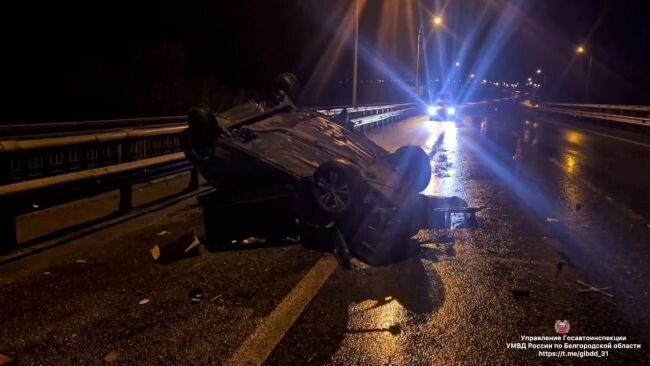 Ночное ДТП под Белгородом: молодой водитель на «девятке» влетел в отбойник и перевернулся