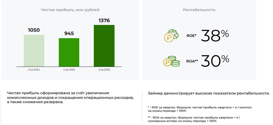 Вчера был на звонке Займера по итогам 3 квартала текущего года и было интересно послушать комментарии менеджмента. Квартал закрыли на "мажорной ноте", и что важно — компания демонстрирует системный подход, а не разовый эффект на фоне удачной конъюнктуры. Поделюсь основными тезисами.