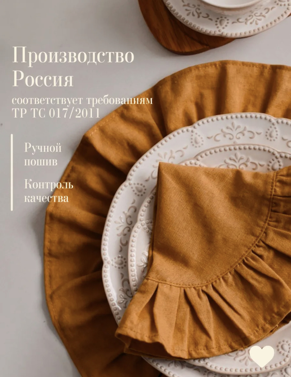 Очень красиво смотрятся в осенних сервировках. В составе хлопок и лен. При желании, не сложно сшить такие самостоятельно. Берите идею для творчества, возможно у вас уже есть материал, который можно использовать для этих целей.