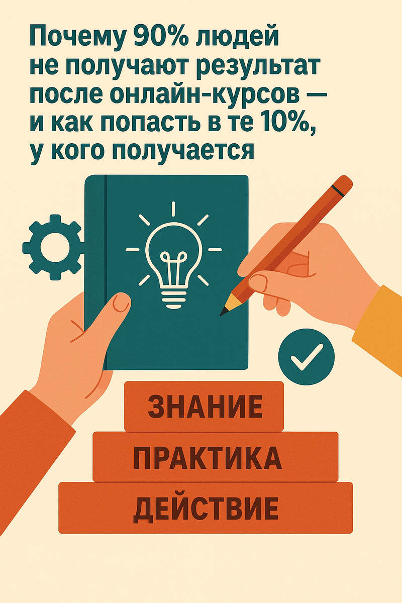 Все вокруг учатся, покупают онлайн-курсы, но у большинства потом одно и то же: «курс бесполезный», «обещали одно — получилось другое». Почему так? И что нужно делать, чтобы обучение реально приносило результат? Делюсь своим опытом и наблюдениями после десятков пройденных курсов. Сегодня онлайн-обучение стало обычным делом. В рекламе всё красиво: “Освой новую профессию”, “Через месяц выйди на доход”, “Мы доведём тебя до результата”. Но потом проходит несколько недель, и человек разочаровывается: “Курс ерунда”, “Ничего не работает”, “Обещали одно, а вышло другое”. И вот главный момент — чаще всего дело не в курсе, а в самом человеке. Курс — это как купить абонемент в спортзал. Ты можешь купить — но если не ходишь, результата не будет. Так и здесь: курс показывает путь, но пройти его нужно самому. Можно пройти десяток тренингов, но если не применять знания — всё останется только в голове. Создатели курсов дают тебе ключи, но дверь открываешь ты. Я видел десятки примеров. Два чело