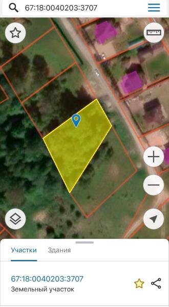 Название: Земельный участок с кадастровым номером 67:18:0040203:3707 площадью 1635 кв.м., относящийся к категории земель населенных пунктов