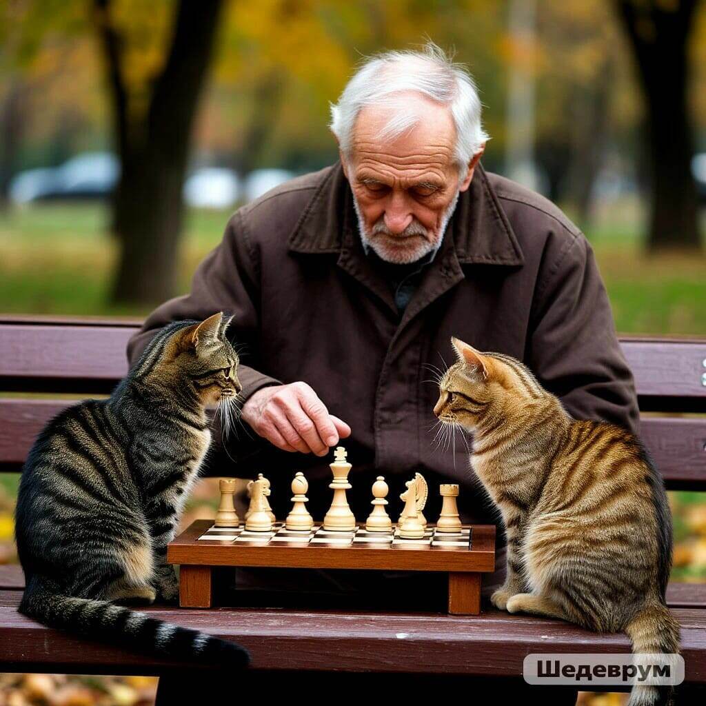«Вроде не похожи на бродячих. Интересно откуда они?», – рассеянно подумал пенсионер и вернулся к своей доске, продолжая переставлять фигуры. Спустя какое-то время он поднял голову и замер. Обе кошки сидели неподвижно и смотрели на шахматную доску. Не просто смотрели, а вглядывались, их взгляд был настолько осмысленным, что Виктор Семёнович удивился.