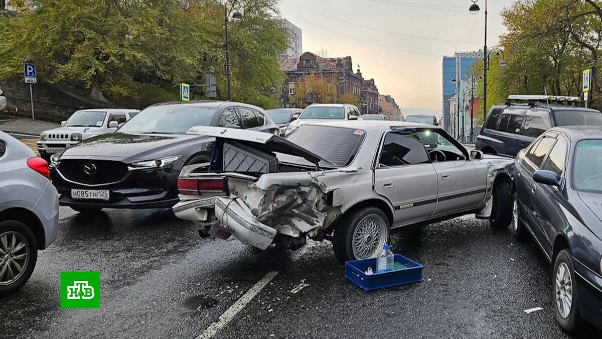 Во Владивостоке Honda с заклинившей педалью газа протаранила 12 машин