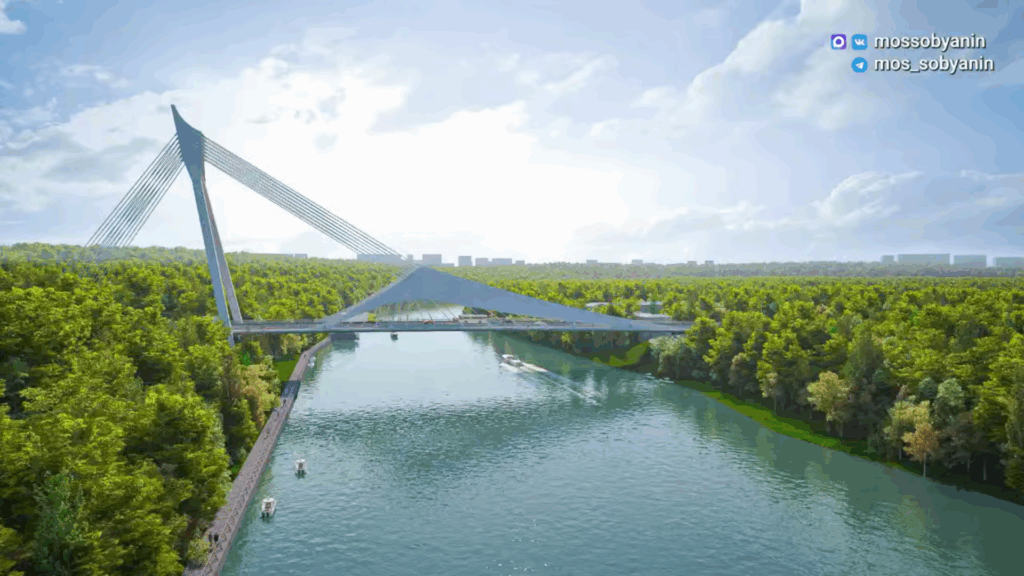 На западе Москвы продолжается строительство моста-паруса через Москву-реку. Об этом сообщил мэр столицы Сергей Собянин в своем канале в МАХ. По его словам, уже смонтированы две крупные секции пролетного строения над левым берегом и руслом реки — это больше половины всей конструкции. Новый мост получит четыре полосы движения. Он обеспечит удобный выезд из Филевского Парка на Северо-Западную хорду и создаст дополнительный маршрут до района Хорошево-Мневники. В том числе, благодаря ему упростится проезд к будущему городскому кластеру в Мневниковской пойме и территории Государственного космического научно-производственного центра имени Хруничева. Сергей Собянин отметил, что объект возводится с применением современной технологии: Строительство ведем «в навес» — эта современная технология позволяет собирать мост прямо над водой, без остановки движения электросудов по Москве-реке, — подчеркнул мэр. Сейчас специалисты ведут укрупнительную сборку металлических конструкций. В ближайшее время он